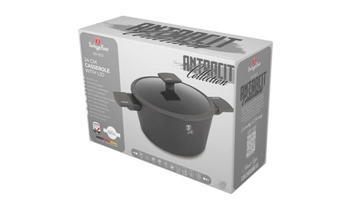 The Berlinger Haus BH‑8131N Casserole with Lid is part of the Antracit collection, combining elegant design with professional performance. Crafted from forged aluminium with a triple‑layer marble non‑stick coating, this 24cm casserole pot ensures healthier cooking with minimal oil and easy food release. The tempered glass lid retains heat and flavour, while the ergonomic soft‑touch handles provide safe and comfortable use. Finished in soft matt cream, it coordinates perfectly with other Sahara cookware and kitchen accessories.