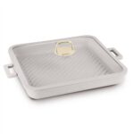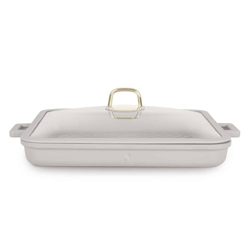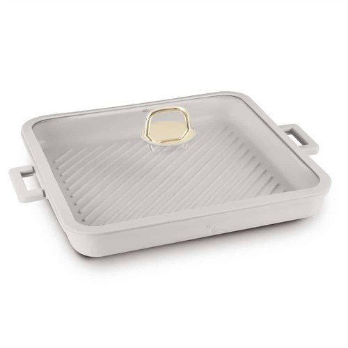 The Berlinger Haus BH‑7790 Grill Pan with Lid is part of the Sahara Collection, combining elegant design with professional performance. Crafted from forged aluminium with a triple‑layer marble non‑stick coating, this 34cm square grill pan ensures healthier cooking with minimal oil and easy food release. The tempered glass lid retains heat and flavour, while the ergonomic soft‑touch handle provides safe and comfortable use. Finished in soft matt cream, it coordinates perfectly with other Sahara cookware and kitchen accessories.