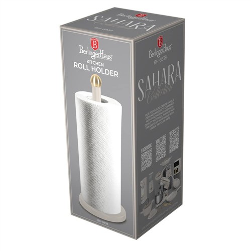The Berlinger Haus BH‑6838 Kitchen Roll Holder is part of the Sahara Collection, combining functionality with elegant design. Crafted from premium stainless steel with a durable matt black coated core and finished in soft matt cream, it provides a stylish countertop solution for storing and dispensing kitchen paper rolls. Compact yet stable, it fits standard‑size rolls and adds a coordinated look to modern and classic kitchens alike.