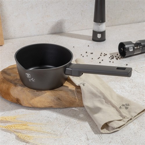The Berlinger Haus BH‑8118 Saucepan with Lid is part of the Antracit collection, designed for stylish and practical everyday cooking. Crafted from forged aluminium with a triple‑layer marble non‑stick coating, this 16cm saucepan ensures healthier cooking with minimal oil and easy food release. The tempered glass lid retains heat and flavour, while the ergonomic soft‑touch handle provides safe and comfortable use. Finished in soft matt cream, it coordinates perfectly with other Sahara cookware and kitchen accessories.