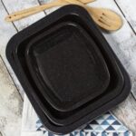 The glossy enamel surface is naturally scratch‑resistant, stain‑resistant, and metal‑utensil safe, making it ideal for high‑temperature roasting and frequent use.