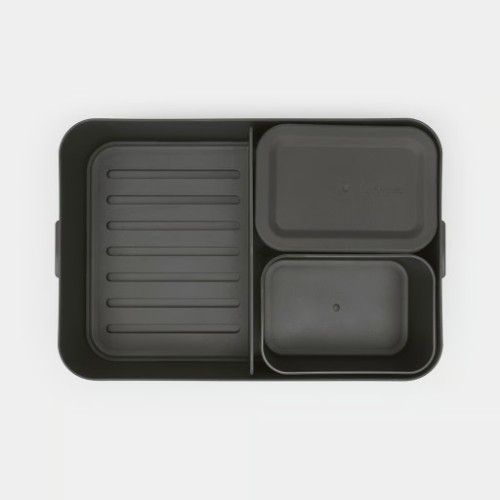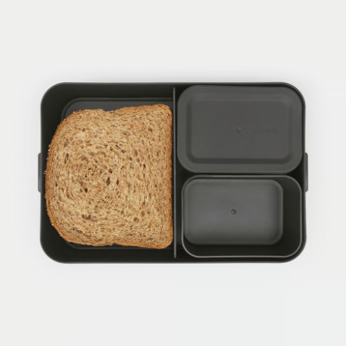 This large Make & Take lunch box is built for everyday use at work, school, or travel. The spacious 2‑litre interior fits up to four sandwiches or a full meal, while the removable divider and two small containers allow flexible organisation of fruit, nuts, vegetables, or snacks.
