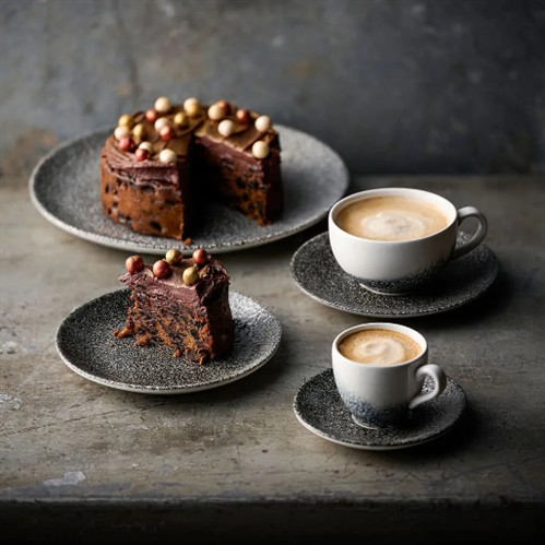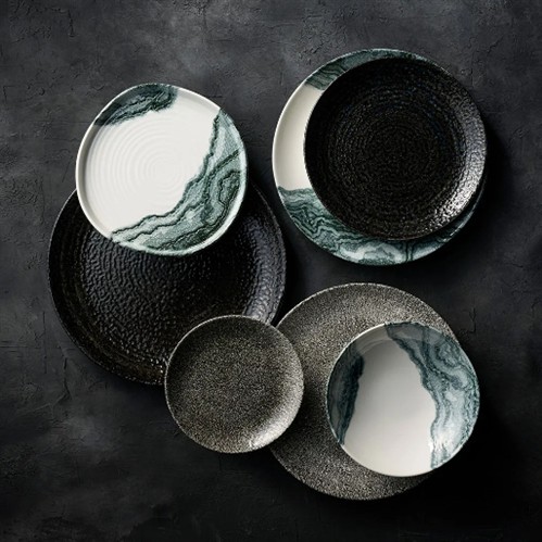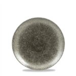 The Churchill Raku Quartz Black Coupe Plate 17cm (Product Code: RKBQEVP61) is part of the Studio Prints Raku collection, inspired by the traditional Japanese Raku firing technique. This vitrified ceramic plate features a reactive quartz black glaze printed under a durable eco-glaze finish, creating a unique artisan look with every piece. Designed for hospitality environments, it offers exceptional strength, stain resistance, and thermal shock durability.