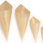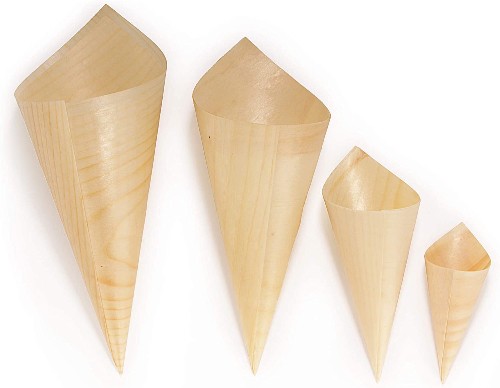 A pack of 50 pure wood cones ideal for food serving.