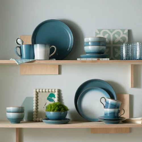 The Denby Azure Coupe Cereal Bowl is a beautifully handcrafted piece made in Derbyshire, England. Featuring a soft, tranquil glaze in powder blue and sea green tones, this bowl adds a refreshing coastal feel to any table setting. Its coupe shape and 820ml capacity make it ideal for cereal, soup, fruit salads, puddings, or even oven-to-table dishes like cottage pie. Crafted from durable stoneware, it’s designed for everyday use with timeless style.