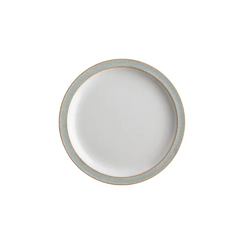 The Denby Small Plate in Elements Light Grey is part of the Elements collection, offering a clean, modern aesthetic for everyday dining. Handcrafted in England using locally-sourced clay, this 17cm plate features a soft light grey glaze, simple coupe shape, and durable stoneware body, making it ideal for bread, starters, desserts, or side servings.