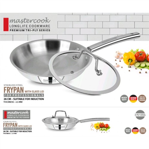 The Frypan with Glass Lid (26cm) in Stainless Steel is a versatile cooking essential designed for sautéing, frying, and simmering. Crafted from durable stainless steel, it offers excellent heat distribution and long-term performance. The tempered glass lid allows for easy monitoring while retaining moisture and flavour, making it ideal for both home and commercial kitchens.