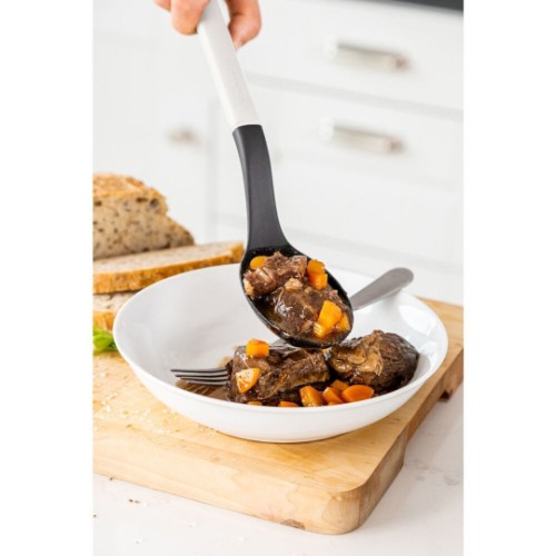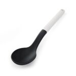 The KitchenAid Cooking Spoon in Porcelain White is a durable, heat‑resistant kitchen utensil designed for everyday stirring, mixing, folding, and serving. It features a wide nylon head that is gentle on non‑stick cookware and withstands high cooking temperatures. The ergonomic porcelain‑white handle provides a comfortable, secure grip and includes a hanging loop for easy storage. Its 34cm length makes it suitable for both home kitchens and professional food‑prep environments.