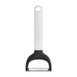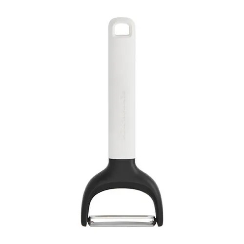 The KitchenAid Y Peeler in Porcelain White is a durable, efficient peeling tool designed for smooth, controlled peeling of both firm vegetables and soft‑skinned fruits. Its horizontal stainless‑steel blade glides cleanly through potatoes, carrots, cucumbers, tomatoes, and peaches, while the ergonomic porcelain‑white ABS handle provides comfort, balance, and a secure grip. A protective blade cover is included for safe storage, making it suitable for both home kitchens and professional prep environments.