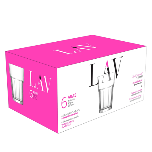 The LAV® Aras Glass Tumblers 360ml are a stylish and practical choice for any kitchen or bar, designed to elevate the presentation and enjoyment of your favorite beverages. Crafted from high-quality glass, these tumblers feature a ridged, multi-faceted shape that enhances grip, stability, and visual appeal. With a generous 360ml capacity, they are ideal for serving water, juice, cocktails, and more. Durable and heat-resistant, these tumblers are dishwasher safe and perfect for both home and professional use.
