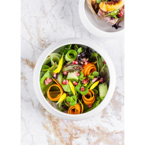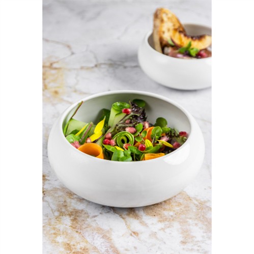 The Mikasa Hospitality Lotus Bowl 16cm in White is a nature-inspired serving piece shaped to echo the curves of lotus seed pods. Its high-edged, cocoon-like profile draws the eye to the centre of the dish, enhancing the visual impact of plated ingredients. Crafted from durable vitrified ceramic, it features a smooth, glossy white glaze that amplifies the colours of fresh ingredients—ideal for vibrant courgette spaghetti, lentil ragù, or citrus desserts. Commercially tested for high-volume use, it resists stains, odours, and scratches while maintaining a refined, organic finish.