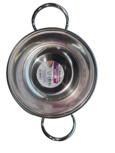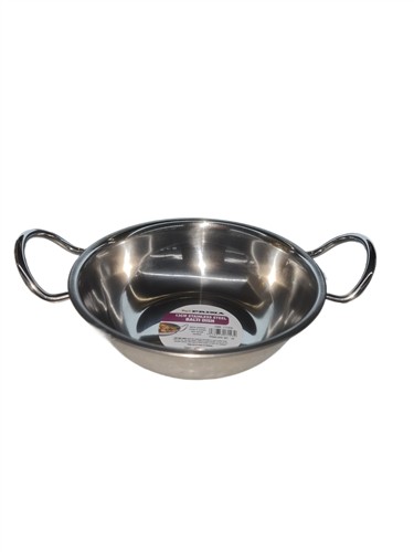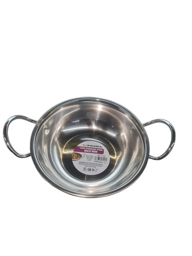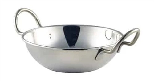The Prima 13cm Stainless Steel Balti Dish is a compact, durable serving vessel ideal for presenting individual portions of curries, rice, dhal, and other Indian or Asian cuisine. With a polished silver finish and twin handles for easy lifting, this dish is perfect for both home dining and professional catering. Its oven-safe and dishwasher-safe construction ensures convenience and longevity in high-volume foodservice environments.
