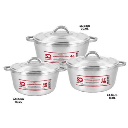 The Sovereign Houseware Dutch Pot (46cm) is a large-capacity, heavy-gauge aluminium cooking vessel designed for bulk preparation of stews, soups, rice dishes, and braised meats. Its traditional rounded base and wide mouth allow for even heat distribution and easy stirring, making it ideal for Caribbean, African, and South Asian cooking styles.