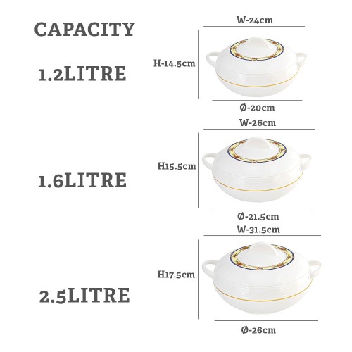 • Usage: Keeping food hot or cold, serving rice, curries, stews, biryanis, salads, desserts