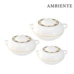 The SQ Professional Ambiente 3‑Piece Insulated Hot Pot Set in Red/White is designed to keep food hot or cold for up to 6 hours. Each pot features a superior stainless‑steel inner liner and high‑quality PU insulation, ensuring excellent temperature retention without reheating. The food‑safe plastic exterior is durable, easy to clean, and decorated with a stylish two‑tone design. Ideal for family meals, parties, buffets, picnics, and catering use.