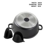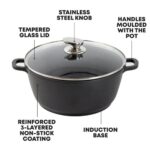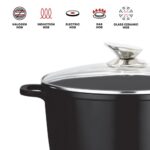 The SQ Professional Nea 20cm Nera Stockpot is a compact, premium die‑cast aluminium pot designed for efficient heat distribution and long‑lasting durability. Its reinforced 3‑layer non‑stick interior allows healthier cooking with minimal oil and effortless cleaning. The tempered glass lid includes a steam vent for controlled cooking, while the integrated die‑cast handles provide strength and a seamless modern look. With a 2.8‑litre capacity, this stockpot is ideal for sauces, curries, soups, small meals, and everyday cooking. Suitable for all hob types, including induction.