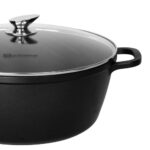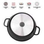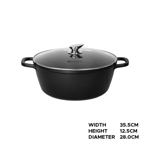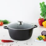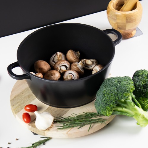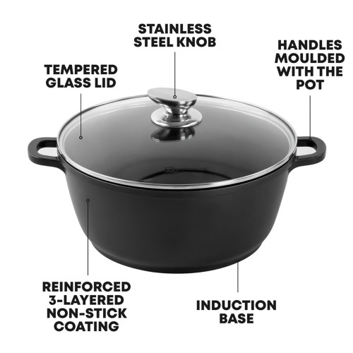 The SQ Professional Nea 28cm Nera Stockpot is a premium die‑cast aluminium pot designed for exceptional heat distribution, durability, and modern kitchen performance. Its reinforced 3‑layer non‑stick interior provides healthier cooking with minimal oil and effortless cleaning. The tempered glass lid includes a steam vent for controlled cooking, while the integrated moulded handles offer strength, stability, and a seamless finish. Suitable for all hob types, including induction, this 6.3‑litre stockpot is ideal for stews, curries, soups, pasta, and family‑size meals.