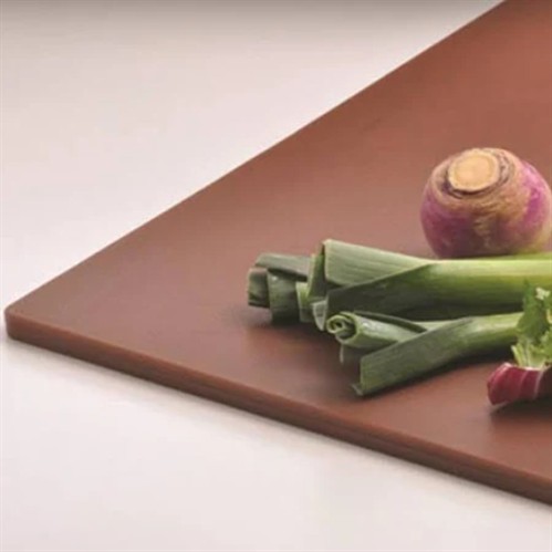 The Sunnex Polyethylene Chopping Board (18x12x0.5in) in Brown is a durable, hygienic surface designed for professional food prep environments. Colour-coded for cooked meat handling under HACCP guidelines, it helps prevent cross-contamination in commercial kitchens.
