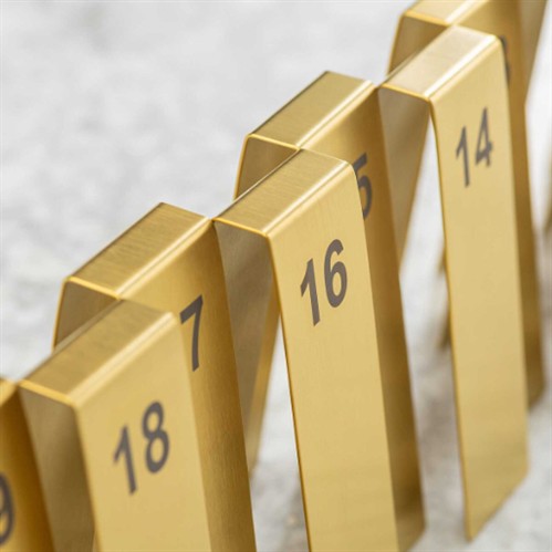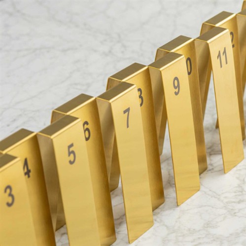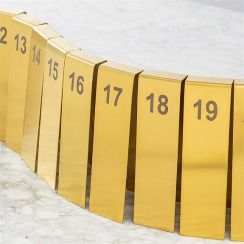 The Table Number Tents (1–25) in Gold Finish are essential for organised seating and service in restaurants, banquets, weddings, and catered events. Made from durable plastic with a metallic gold coating, each tent features bold black numbering on both sides for easy visibility across the dining area.