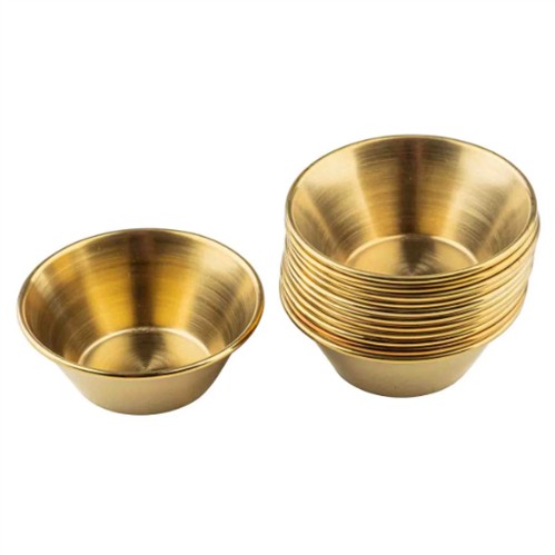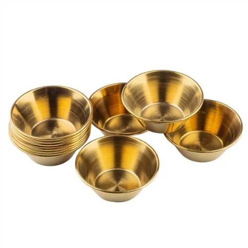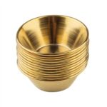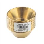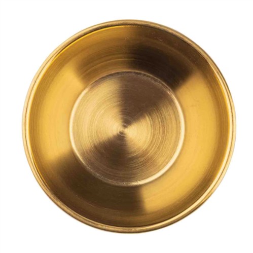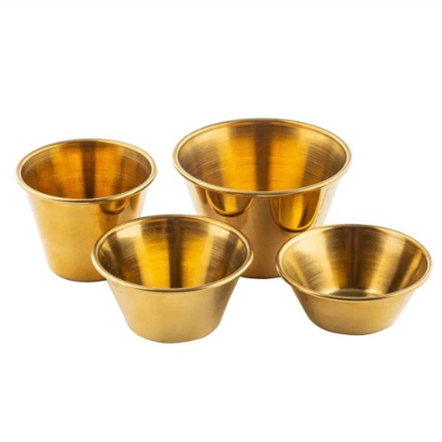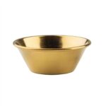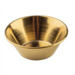 The Tablecraft Tapered Ramekin in Gold Finish offers a compact, upscale solution for serving sauces, dips, and condiments. Crafted from stainless steel with a gold PVD coating, this 1.5oz ramekin features a tapered round profile, durable construction, and heat resistance up to 176°C, making it ideal for elegant food presentation in restaurants, catering, and hospitality settings.
