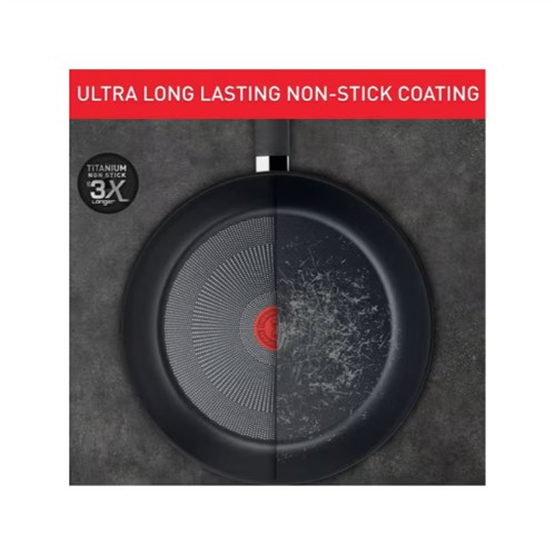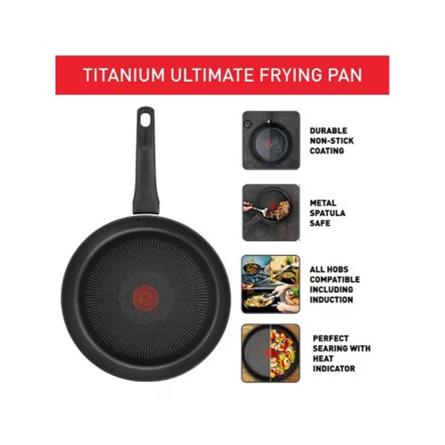 The Tefal Ultimate Non-Stick Frypan Black 24cm is engineered for durability and precision cooking. Featuring Tefal’s Titanium anti-scratch coating, it offers exceptional non-stick performance and resistance to metal utensils. The Thermo-Signal™ technology indicates optimal cooking temperature, while the induction-compatible base ensures even heat distribution across all hob types. Ideal for sautéing, frying, and browning with minimal oil.