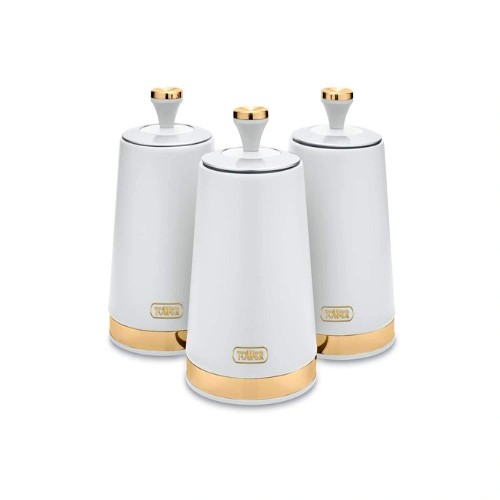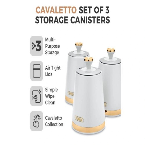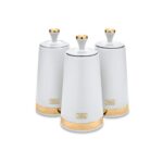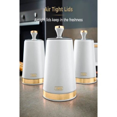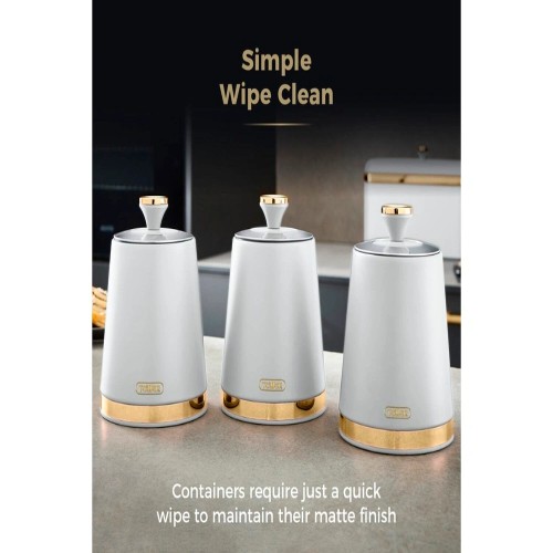 The Tower Solitaire 3‑Piece White Canister Set is a stylish and durable storage solution designed for modern kitchens. Each canister is made from stainless steel with a sleek white coating and a mirror‑finished loop‑top lid. The airtight seal helps preserve freshness, making them ideal for storing tea, coffee, sugar, and other dry ingredients. With a generous 1.3L capacity per canister, they reduce the need for frequent refilling and add a clean, contemporary aesthetic to any worktop.