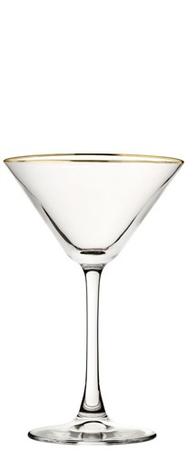 The Utopia Enoteca Martini Glass with Gold Rim is an elegant, premium cocktail glass designed for stylish drink presentation in bars, restaurants, hotels, and events. Featuring a hand‑decorated precious‑gold rim, a tall fine stem, and a generous 7.5oz (22cl) bowl, it delivers a refined silhouette ideal for martinis, signature cocktails, and luxury service. Manufactured from durable machine‑made glass, this range balances fine‑dining aesthetics with commercial practicality.