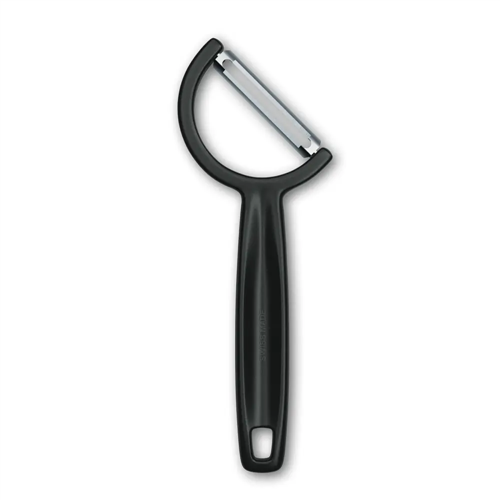 The Victorinox Peeler Black Handle 13cm is a high-quality kitchen tool designed for effortless peeling of fruits and vegetables. Featuring a sharp stainless steel blade, this peeler ensures smooth and precise peeling, making it ideal for home kitchens and professional use. The ergonomic black handle provides a comfortable grip, allowing for efficient and controlled peeling.
